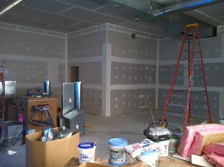 The two top photos are of the inside of the new proshop. The walls are covered in drywall and all the mechanical, electrical, and plumbing (m.e.p.'s) are installed. The place is looking good and is ready for the team of Gary and Jack.